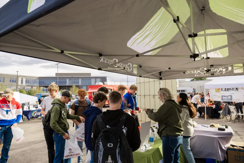 To make the event memorable, we handed out hats, shirts, candy, prizes, and business cards. These take home items help students remember their experience and continue to explore future possibilities with Grass Creek Construction.